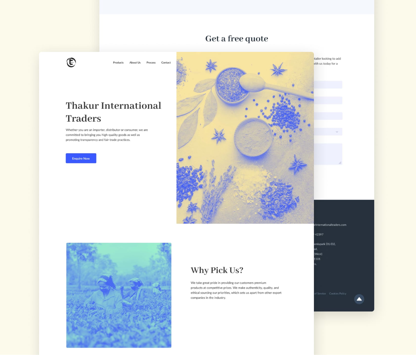 I designed and developed the website for Thakur International Traders website, a Mumbai-based export company that caters to clients globally. The goal was to create a modern, user-friendly website that showcased the company's products and services while maintaining an elegant aesthetic.